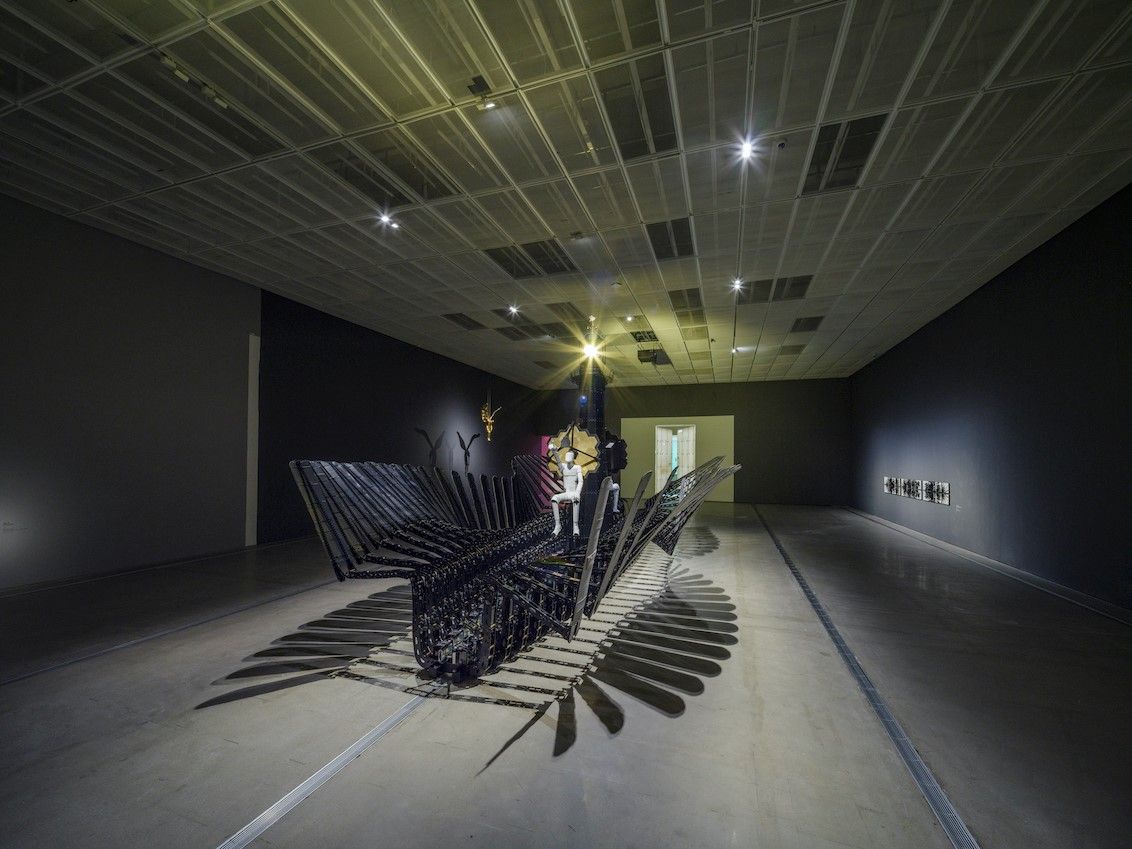 馆中正在展出的是韩国艺术家崔旴嵐(Choe U-Ram)的中国首次个展“奥德赛”(Odyssey)。以“机械生命体”(Anima-Machines)装置闻名的崔旴嵐可谓机械狂人,他将制造精密机械的技术赋之予艺术呈现,将整个展览空间变成大型三维舞台,音乐、视频为背景,大型机械独自“起舞”,十分震撼。